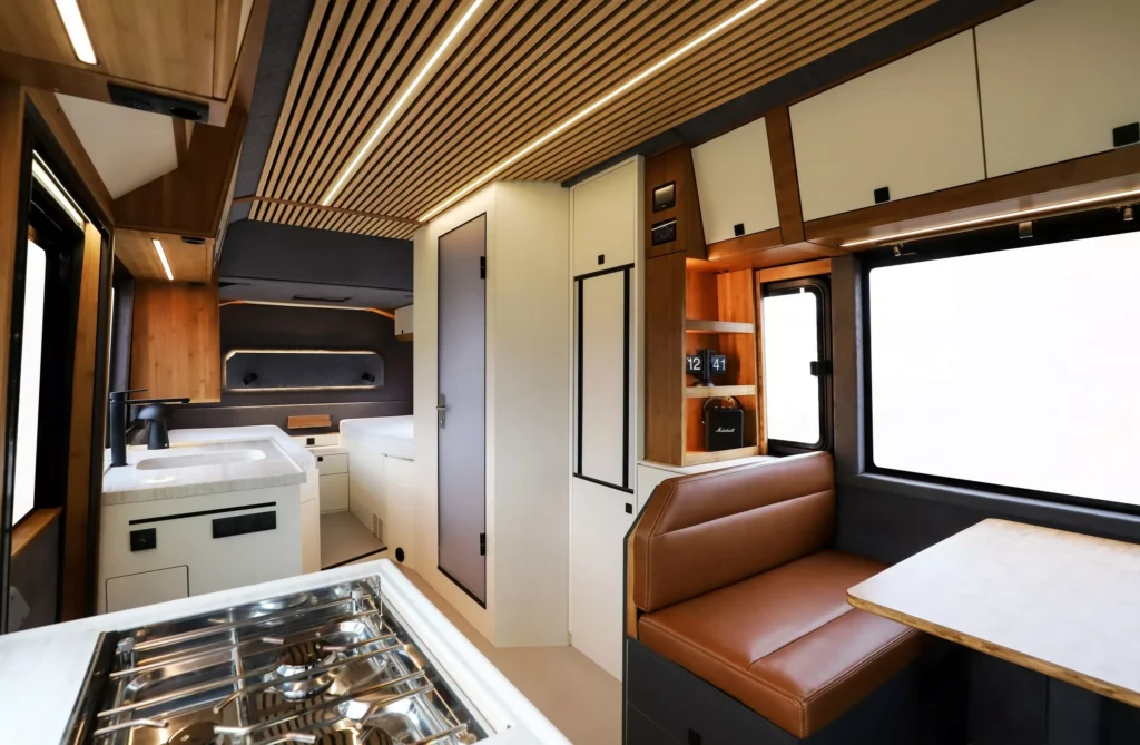 Koka apdare un augstas kvalitātes materiāli rada mājīgu atmosfēru. Pieejama grīdas apsilde, jumta gaisa kondicionieris un 250 litru ūdens tvertne, lai ceļojums būtu patīkams pat tālākajos maršrutos.